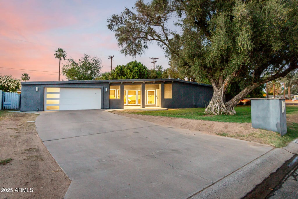 Your dream corner lot property is now available in Arcadia Proper near Old Town Scottsdale & Fashion Square. This home has a 2-car garage, extended driveway, grass front yard, beautiful grown trees for excellent curb appeal. Not to mention new roof & white oak flooring w/ in last five years! The bright living room has vaulted ceilings, recessed lighting & modern fixtures. Kitchen includes floor to ceiling cabinets, beautiful skylights for more natural light, striking tile backsplash, SS appliances and large center island with a breakfast bar & drink fridge built-in & TWO dishwashers. The main suite boasts French doors that lead to backyard for indoor-outdoor living, private bathroom w/ double sinks, and a walk-in closet. The incredible backyard has a pool & large patio that is a MUST SEE!