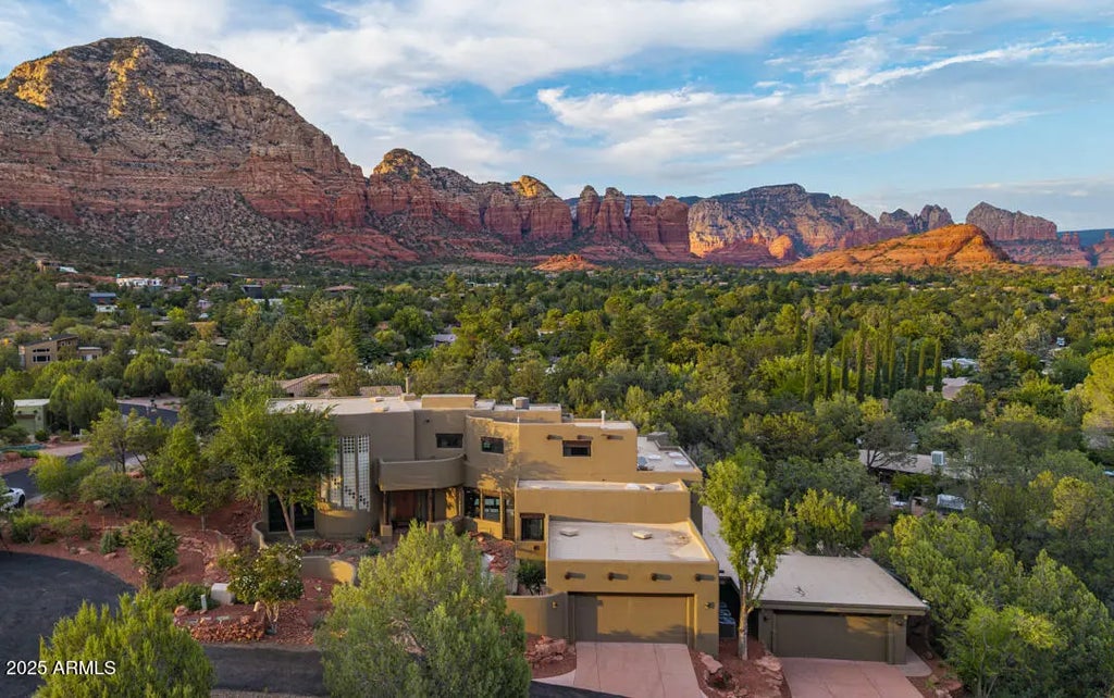 Exclusive property in Sedona's premier subdivision, Thunder Mountain Ranch. Red Rock views from the perfect kitchen for a home chef that enjoys hosting large groups. Red Rock views from the Living room, den, primary bedroom on the main level, & the Primary bedroom on upper level. Red Rock views from both balconies, the home gym, the guest bedroom, and from the pool, spa & back patio. Home is three levels with an elevator. Classic Sedona touches w/ exposed Southwest Beams(vigas) Saltillo tile, Kiva fireplaces, a new roof under warranty & all the right modern upgrades from new toilets, new HVAC, new Primary bathroom suite, new light fixtures, new pool equipment, & new paint inside & out. Unbelievable storage throughout this home. Don't forget the four car garage! Multiple trailheads are less than a mile away, in addition to shopping, grocery, restaurants, theaters and more.
