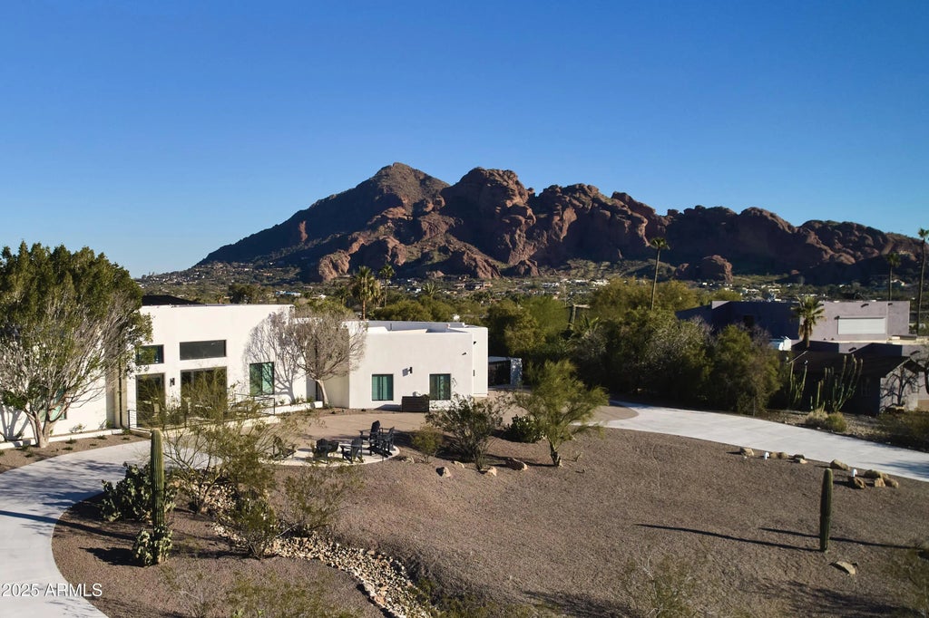 Perched on a private 1-acre hillside lot, this fully reimagined 5-bedroom, 4.5-bath luxury retreat delivers the ultimate Paradise Valley lifestyle with panoramic views of Camelback Mountain, Mummy Mountain, and sparkling city lights. Completely remodeled in 2024, the 4,138 sq ft residence blends sophisticated design with modern convenience—move-in ready and meticulously curated. Inside, soaring 14' ceilings, expansive glass doors, and custom finishes create a light-filled, elegant atmosphere. The split floor plan offers dual primary suites, each with a spa-like bath and soaking tub, while the gourmet kitchen serves as a true showpiece with two oversized islands, a butler's pantry, Monogram appliances, and a built-in Wolf coffee makerperfect for entertaining. Resort-style living continues outdoors with a Pebble-tec pool with baja shelf and spa, a cold plunge, infrared sauna, firepit, and turf play areas, all designed for seamless indoor/outdoor living through accordion doors that open to both the backyard and a view-filled front patio. Smart-home automation, advanced security, and ample parkingincluding RV/boat accesscomplete this one-of-a-kind property. With unmatched design, expansion potential, and all furnishings available for sale, this hillside estate is more than a homeit's an experience.