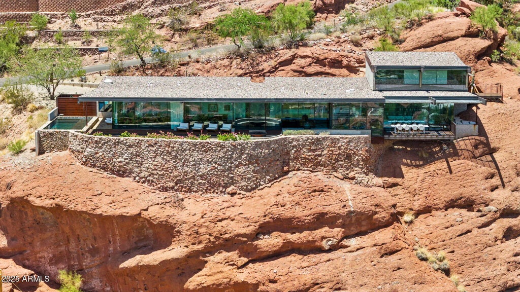 Mid-Century Modern Masterpiece on Camelback Mountain Perched high on the cliffs of Camelback Mountain, this breathtaking mid-century modern estate redefines luxury desert living. Built in 2018 and meticulously designed for seamless indoor-outdoor living, this 5,800 sq ft architectural gem captures sweeping mountain and city lights views from every angle—especially the dazzling Arizona sunsets. Floor-to-ceiling glass walls dissolve the boundaries between inside and out, allowing natural light and panoramic vistas to flow into every corner of the open-concept layout. The main living areas open effortlessly to expansive outdoor spaces, creating an entertainer's dream with multiple lounging and dining zones. The chef's kitchen is a true showpiece, featuring top-of-the-line appliances, sleek cabinetry, a massive island, and direct access to an outdoor kitchen for al fresco dining under the stars. Outside, the pool appears to float above the city, while a built-in fire pit with surround seating creates the perfect gathering space to soak in the skyline below. Every detail from the architectural lines to the carefully integrated landscape was designed to blend luxury with the mountain's natural beauty. With 5 spacious bedrooms and 5.5 bathrooms, this home offers both privacy and comfort on a rare 1.036-acre lot. Built high into the mountain, it provides unmatched elevation, exclusivity, and views that few properties in the Valley can rival. This is more than a homeit's a private retreat in the sky.