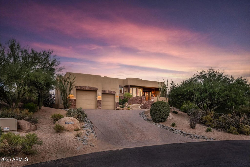 Golf Membership- Nestled in a serene cul-de-sac atop an elevated homesite, this exceptional Southwestern desert residence captures the true spirit of Arizona living with its prized north-south orientation and breathtaking views of Desert Mountain, surrounding mountains, and twinkling city lights. A charming front covered entrance welcomes you home, where the vistas immediately inspire awe and set the tone for a residence designed for tranquility and beauty while the backyard oasis is a private sanctuary bordering natural desert open space and majestic mountains, offering a seamless blend of serenity and entertainment. Step into the warm and inviting great room, where wood plank flooring, inset ceiling details, and a cozy fireplace create an intimate ambiance ideal for gatherings large and small. Expansive floor-level windows bring the beauty of the desert indoors, ensuring every moment is touched by the landscape. The open-concept kitchen is both functional and elegant, featuring an island, granite countertops, Alder wood cabinetry, bar seating and casual dining space framed by curved windows with panoramic views and sliding glass doors that open to the patioperfect for indoor-outdoor entertaining. The formal dining room, positioned at the front of the home, captures the elevated mountain vistas through striking curved vertical windows, offering a perfect setting for intimate dinners or enjoying a cocktail from the inset bar. The primary suite, nestled on the eastern side of the home, serves as a true retreat. Enjoy a spacious bedroom accented by a distinctive kiva fireplace, a sitting area, and patio access for tranquil morning coffee or star-lit evenings. The luxurious spa-inspired bath indulges with dual vanities, a soothing spa tub, a snail-style walk-in shower, and dual walk-in closets. The office or 4th bedroom, complete with a closet and picture windows, provides a quiet workspace with inspiring elevated desert views, while the full guest bath near the entrance offers convenience for all visitors. The west wing hosts two beautifully appointed ensuite guest bedrooms, each with its own private bath, and backyard access, ensuring comfort and privacy for family and guests alike. The backyard oasis is a private sanctuary of serenity, offering a seamless blend of relaxation and entertainment. Enjoy quiet moments beneath the extended covered patio, gather around the outdoor fireplace, or unwind in the spool while taking in sweeping views of majestic mountains and the lush, open desert landscape. A flagstone patio centered around a tranquil water fountain and a built-in barbecue invite effortless alfresco dining and outdoor living all year long. This remarkable residence showcases the finest Southwestern architectural detailsincluding exposed beams, corbels, viga ceilings, arched doorways, custom paint finishes, and handcrafted tile accentscreating a home that is both timeless and full of character. Ideally located in the heart of Desert Mountain, residents enjoy close proximity to the Sonoran Fitness Club, walking trails, and quick access to the back gate for easy trips into town. As a Desert Mountain member, you'll experience a lifestyle of luxury and leisure with seven world-class golf courses, seven clubhouses, the renowned Sonoran Fitness Center & Spa, and The Ranchfeaturing 24 miles of scenic hiking trails bordering the pristine Tonto National Forest. Embrace the essence of Arizona desert living in this captivating homewhere architectural artistry meets natural beauty and every day feels like a retreat. This is more than a residence; it's your desert destiny for the ultimate year-round indoor-outdoor lifestyle.
