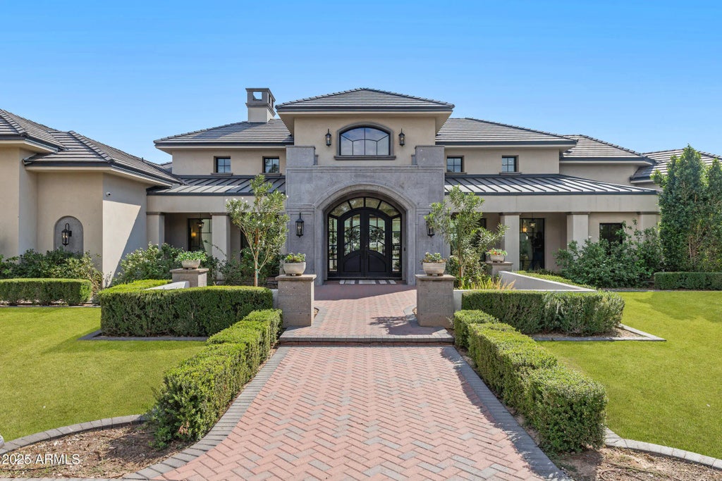 Welcome to 20623 E Cloud Rd, a truly exceptional custom estate on a sprawling 1.15-acre lot in the prestigious gated community of The Pecans in Queen Creek, in the Pecan Lights section. Designed for both grandeur and everyday comfort, this 9,270 sq. ft. residence features 9 bedrooms, 9.5 bathrooms, and a fully detached 2-bedroom casita with its own full kitchen, living room, bath, and laundry, perfect for guests, multigenerational living, or a live-in nanny. From the moment you step through the iron-clad double doors, you're greeted by 26-foot ceilings with exposed wood beams and a 32-foot glass slider that opens to a resort-caliber backyard. The home features full Control4 automation, surround sound throughout, and custom automated shades that make modern luxury effortless. The chef's kitchen is designed to impress, with white Café appliances, a 6-burner gas cooktop, a 72" smart fridge/freezer combo, quartz countertops, and an expansive center island. A walk-in butler's pantry offers a second sink, dishwasher, cooktop, double oven, and plenty of prep space for entertaining. The primary suite is a retreat of its own, featuring a cozy fireplace, dual walk-in closets, a spa-like bathroom with soaking tub, and French doors that open directly to the backyard oasis. Every shower is custom tiled with zero-edge glass enclosures, and premium wood and Italian tile floors flow seamlessly throughout.