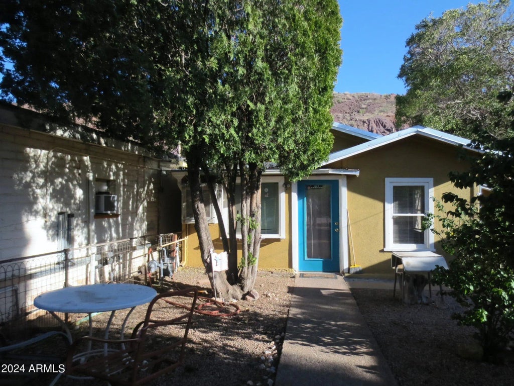 This is a 2 bedroom, 1 bath home. Heating is an unvented wall heater in the living room, cooling is an evaporative cooler. Front bedroom is adjacent to living room. Second bedroom comes off small eating area. Second bedroom also has a door to the back exterior This rental has a large storage shed attached to the west side of the house, with entrances from front and back. There is also a divided shed in the back. Half is a laundry room with washer and dryer. The other half is also for storage. Home is very, very close to the neighbors' home. This home is vacant and ready to move in. Rent includes the sewer and garbage fee.